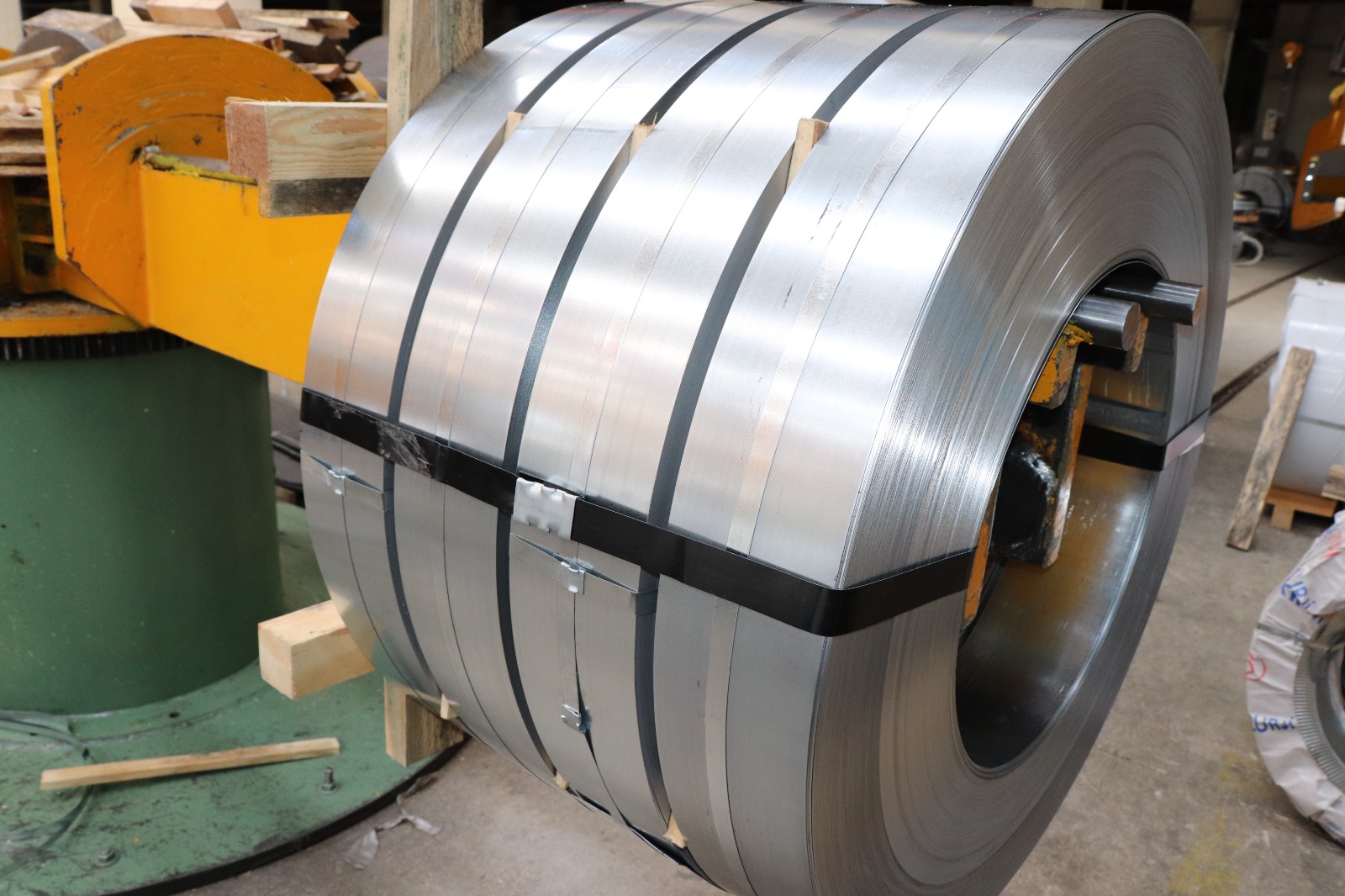 Rulo halindeki sac malzeme, dairesel bıçaklar arasından geçirilerek farklı ölçülerde uzun şeritler halinde kesilir ve bobin şeklinde hazırlanır.